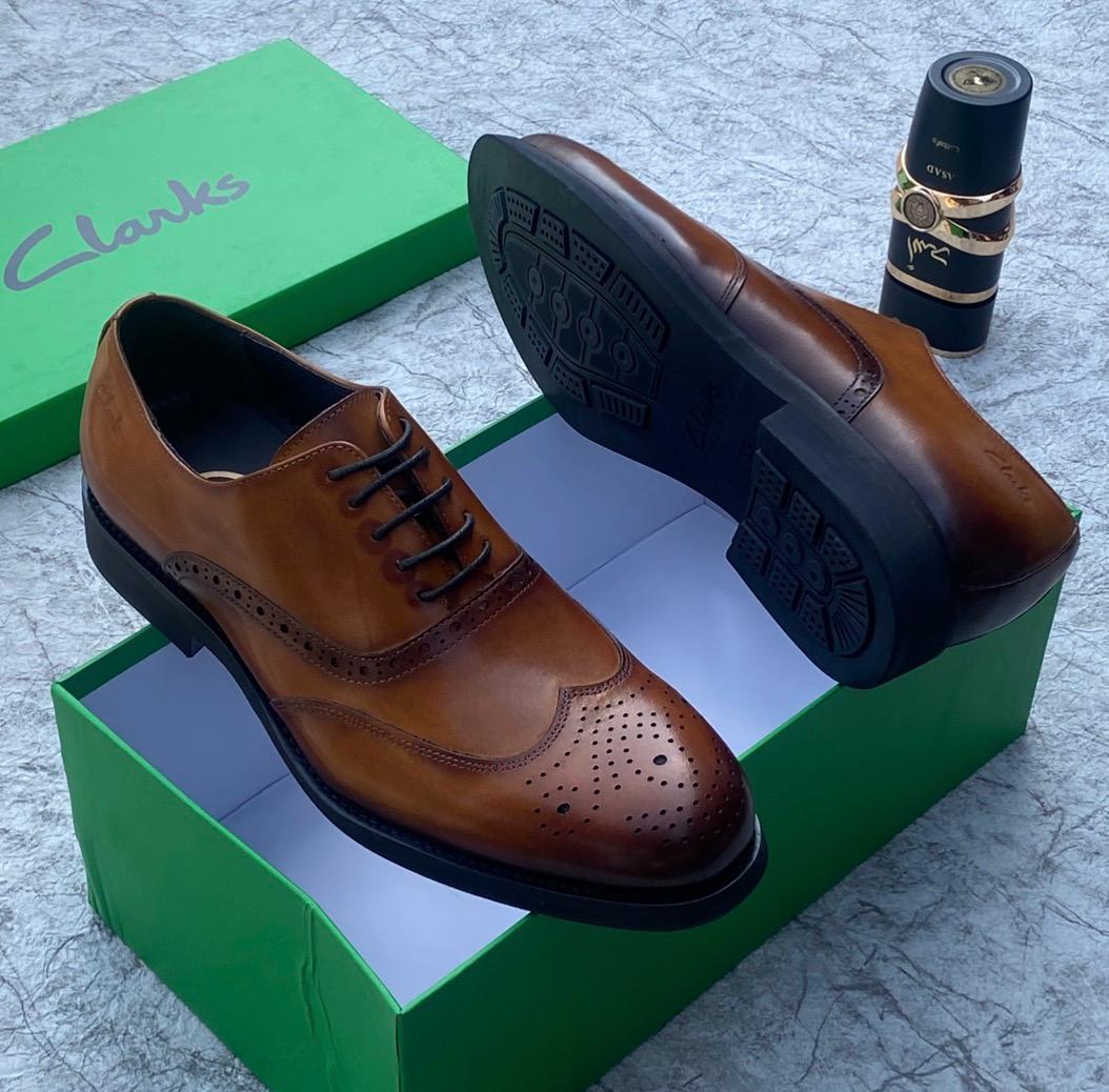 Clarks Lace-Up Brogue Leather Shoes, a sophisticated choice for formal and professional settings.
