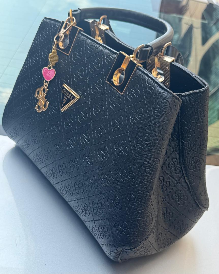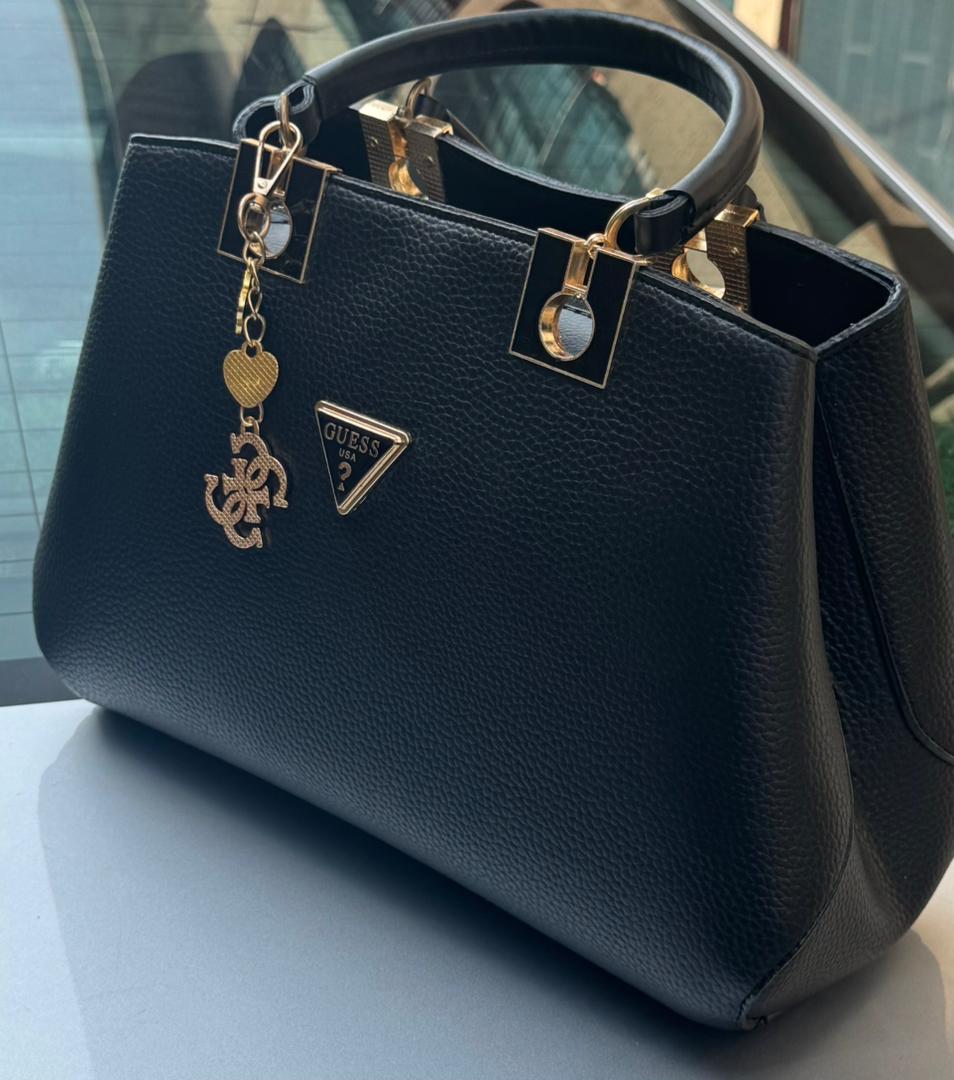 Guess USA Premium Textured Leather Satchel – Classic with Gold-Tone Charms
