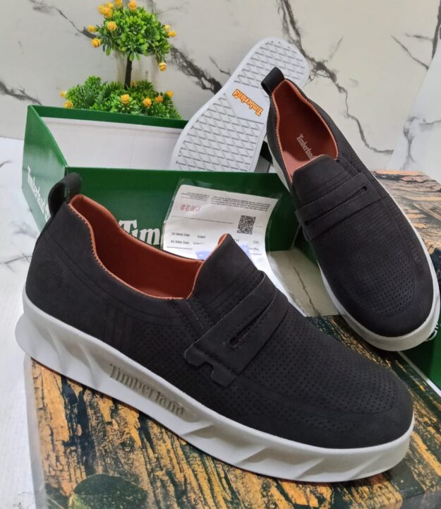 Timberland men’s loafersĀ offers a sophisticated blend of casual and formal styles. Featuring a sleek, dark grey or black textured upper with a modern slip-on design, these shoes are crafted for both comfort and versatility.